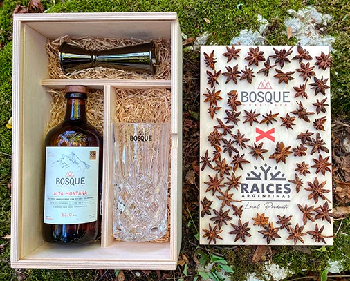 Caja de madera inspirada en los bosques patagónicos y en su biodiversidad, «Gin Bosque» busca conectarnos con la naturaleza a traves de los aromas y sabores de sus botanicos. Contiene 6 latitas de Enebro, Cardamomo, Anís, Rosa, Pomelo, Hibiscus.